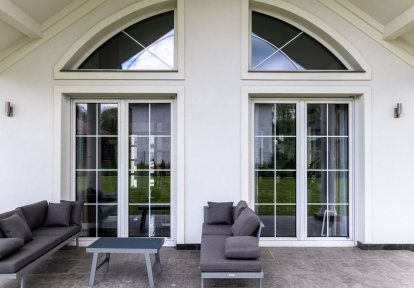 Klassieke witte ramen met sierhouten vormen een volmaakt geheel met de andere elementen van het buitenschrijnwerk. In dezelfde stijl werden de buitendeur en de garageopoort gehouden, waardoor ze zich goed versmelten in de voorgevel. Het interieur verbindt de klassieke stijl van het gebouw met een tikje glamour, wat een ideaal geheel componeert voor het samenleven van het hele gezin.