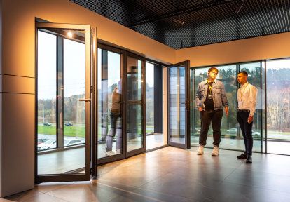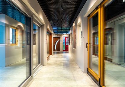 Bij het ontwerpen van de toonzaal met de producten van DAKO hebben we ons niet alleen gericht op het presenteren van het volledige aanbod, maar ook op de mogelijkheden die elk product biedt. Iedere drie verdieping is ingericht met het materiaal waaruit we schrijnwerk vervaardigen: hout, aluminium en kunststof, aangevuld met het aanbod van garagepoorten en raambekleding. Hierdoor hebben onze gasten de mogelijkheid om het volledige assortiment van producten te bekijken, te samen met specifieke oplossingen voor bepaalde afzetmarkten. Alle gepresenteerde ramen, deuren, garagepoorten en raambekledingen zijn uitgerust met een breed scala aan accessoires die hun functionaliteit uitbreiden. Zo kunnen we laten zien hoe bijvoorbeeld een automatische bediening van schuifdeuren of garagepoorten er in het echt uitziet. Klanten die op zoek zijn naar moderne oplossingen, waarderen ook de mogelijkheid om alle elementen van het schrijnwerk te verbinden met domotica-systemen. Door ze in de showroom te presenteren, hebben we de mogelijkheid om te laten zien hoe zo'n intelligent beheer in de praktijk werkt. Alle producten die getoond worden, zijn ontworpen op basis van de huidige designtrends. Daarom is er geen tekort aan gedurfde en interessante kleuroplossingen die het karakter van elke investering zullen benadrukken.