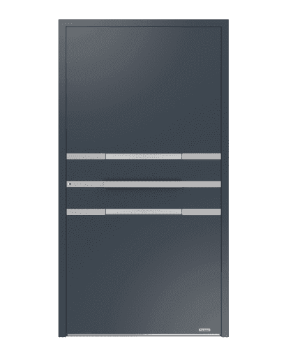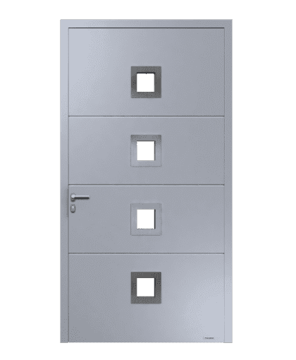 Inspirerende geometrische vormen. Buitendeuren met panelen met een decoratief freeswerk. Voorzien van decors van mat en geborsteld roestvrij staal, rechthoekige beglazingen en decors in standaard-uitvoering. Buitengewone modellen met een rijke uitrusting, met centrale rol gespeeld door geometrische vormen en originele versieringen.