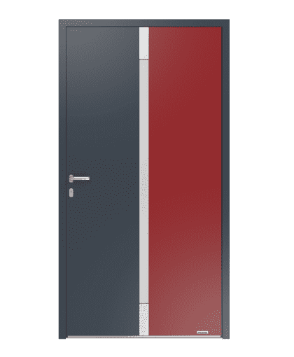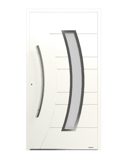 Samenstelling van kleuren en texturen. Buitendeuren met panelen met een decoratief freeswerk. Voorzien van decors van mat en geborsteld roestvrij staal, rechthoekige beglazingen en decors in standaard-uitvoering. Buitengewone modellen met een rijke uitrusting, met centrale rol gespeeld door geometrische vormen en originele versieringen.