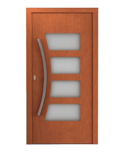 Wij bieden een brede keuze aan kleuren en topkwaliteit materialen! Dit zorgt voor een hoge esthetische waarde van onze voordeuren die ook perfect aansluiten bij de huidige architectonische trends. Dankzij de in onze fabriek toegepaste technische oplossingen zijn we in staat voordeuren te bouwen waarbij de vleugel in één vlak ligt met de vleugelprofiel, waardoor het vleugelprofiel aan de binnen- en buitenzijde van de deur niet ze zien is, wat voor een mooie en moderne uitstraling zorgt.