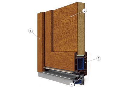 Met de beschikbare kleuren en een rijke keuze aan houtlook-fineerbekledingen (toplagen) kunnen wij uw voordeur perfect afstemmen op uw ramen van hetzelfde materiaal. Bovendien kunnen deze voordeuren aan individuele voorkeuren worden aangepast door te kiezen uit een breed assortiment aan decoratieve elementen zoals beglazing of verschillende decors.