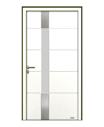 Compositie van kleuren en texturen. De deuren zijn gemaakt van panelen versierd met frezen. Standaard zijn ze voorzien van elementen van mat, geborsteld edelstaal, rechthoekige beglazing en sierelementen. Onconventionele voorstellen in rijke uitrusting, waarbij de hoofdrol wordt gespeeld door geometrie op meerdere niveaus en originele decoraties.