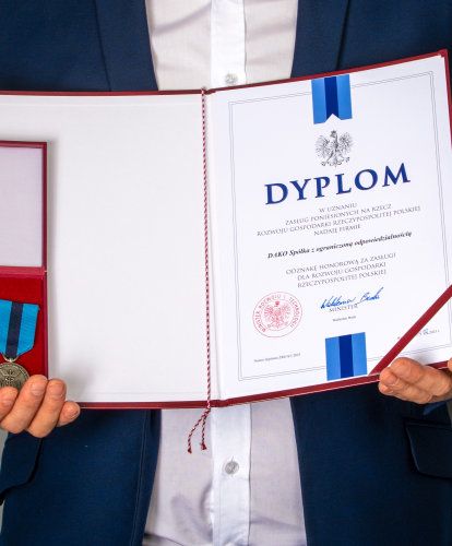 Świadoma działalność biznesowa DAKO została po raz kolejny dostrzeżona i nagrodzona! Resortowe odznaczenie Ministra jest ważną formą docenienia efektywnej pracy i zasług firmy na rzecz rozwoju gospodarki Polski i powodem do dumy dla całego przedsiębiorstwa.