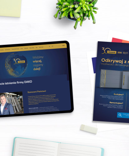 Elastyczny, skuteczny marketing oparty na wartościowych relacjach z klientem i mediami to od lat element sukcesu DAKO. W jubileuszowym, 30. roku działalności, marka zachwyca swoich odbiorców szerokim spektrum działań promocyjnych – zarówno w przestrzeni publicznej, prasie, telewizji, radiu, jak i online. Skoordynowane kampanie reklamowe utrzymane są w myśl hasła ,,Widzimy więcej, sięgamy dalej!”, a granatowo-złota szata graficzna podkreśla status tej wyjątkowej rocznicy.