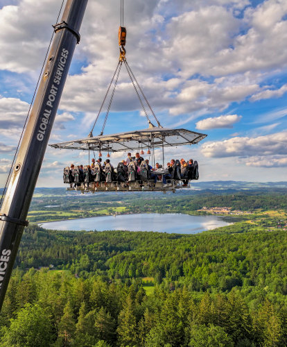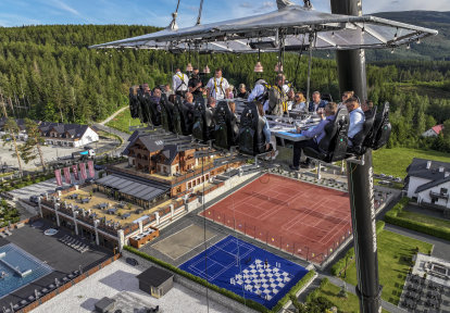 29 maja br. w malowniczym Karpaczu odbyło się wyjątkowe wydarzenie - Kolacja Ponad Szczytami Gór. Nad ekskluzywnym hotelem Seidorf zgromadziła się grupa gości, gotowych na niezapomnianą kulinarną przygodę. Dwuosobowe zaproszenia otrzymała piątka klientów oraz Partnerzy Handlowi, którzy sprzedali im produkty DAKO. Atmosfera przez cały wieczór nasycona była emocjami, które towarzyszyły już od chwili wejścia na pokład platformy. Rozmowy i śmiech jeszcze długo niosły się w powietrzu, podkreślając wyjątkowy charakter kolacji.