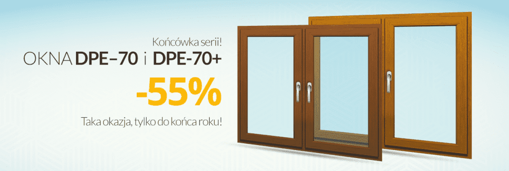 - Promocja dotyczy serii okien DPE-70 i DPE -70+ w dwóch kolorach okleiny