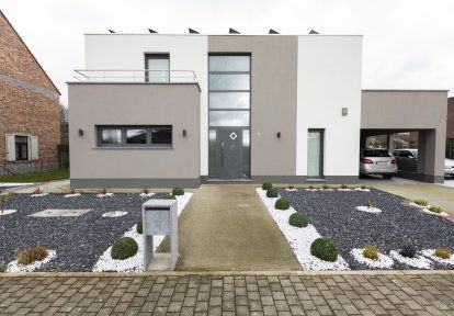 - W obu budynkach zamontowano okna PVC z serii DPP-70. Właścicielom oprócz ochrony przed wzrokiem postronnych osób zależało również na zniwelowaniu w domu odgłosów z zewnątrz. Optymalne parametry izolacji akustycznej okien z serii DPP-70 zapewniają spokój mieszkańcom. Dodatkowo wszystkie okna w wyposażono rolety zewnętrzne. W pierwszym z budynków są one całkowicie niewidoczne, bo ukryte pod elewacją. Możliwości konstrukcyjne drugiego budynku nie pozwoliły na zastosowanie podobnego rozwiązania. W związku z tym, właściciele podjęli decyzję o montażu rolet zewnętrznych elewacyjnych DK-RZO.