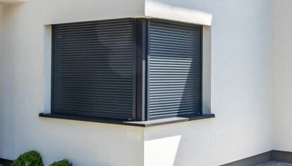 - We wszystkich oknach zamontowano podtynkowe rolety zewnętrzne, sterowane automatycznie. Wykorzystanie centrali sterującej roletami pozwala na regulację nimi za pomocą pilota, bądź aplikacji na smartfonie. Właściciele mogą stworzyć również harmonogramy ich automatycznego działania (wieczorem rolety same się zamykają, a rankiem otwierają).