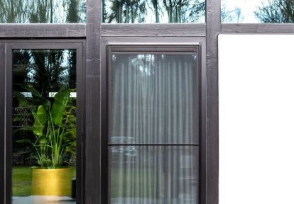 Domy szkieletowe charakteryzują się także bardzo dobrą izolacją termiczną ścian. Aby zachować optymalną termikę całej konstrukcji budynku, warto więc wybrać stolarkę o wysokich parametrach termoizolacyjnych. Inwestorzy w tym przypadku zdecydowali się na ślusarkę aluminiową DAKO o niskim współczynniku przenikania ciepła z serii DA-77.