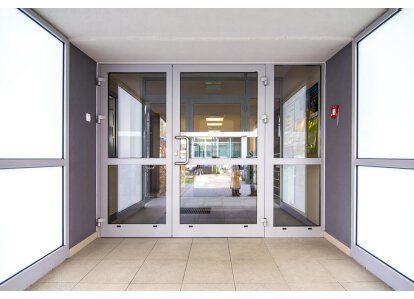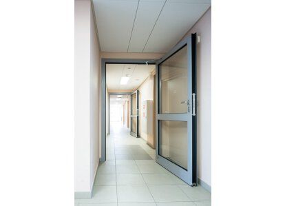 Zastosowane produkty: ślusarka aluminiowa wraz z drzwiami przeciwpożarowymi stolarka PVC i ślusarka aluminiowa