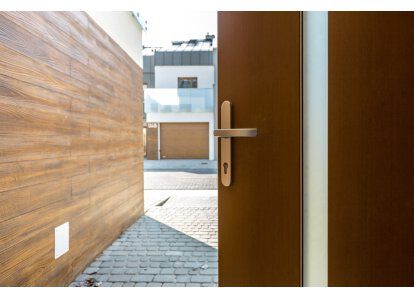 Zastosowane produkty: okna drewniane, rolety, drzwi drewniane, bramy