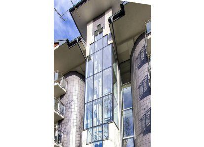Zastosowane produkty: konstrukcje aluminiowe: przeszklenia szybów windowych