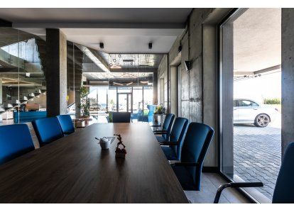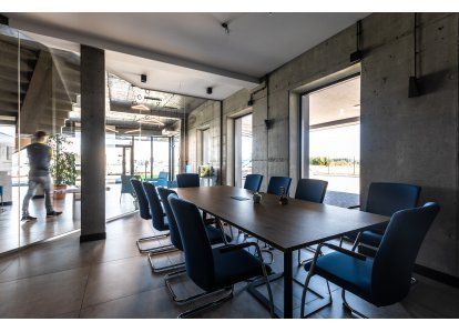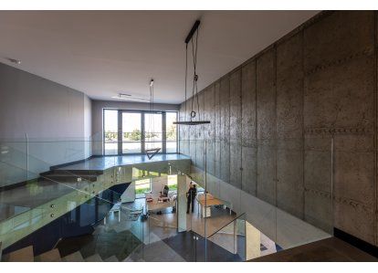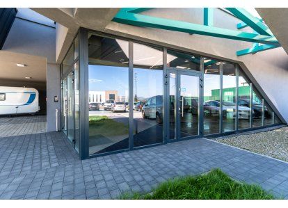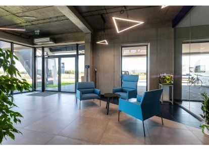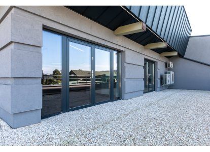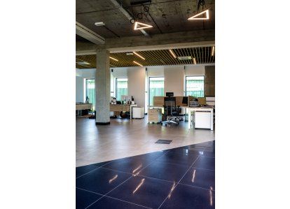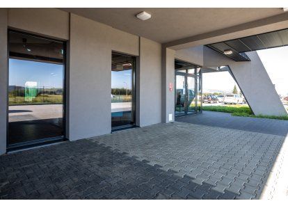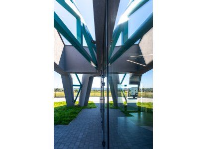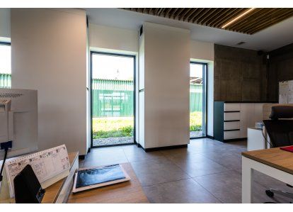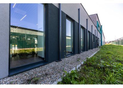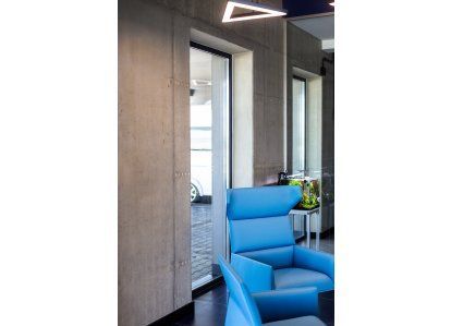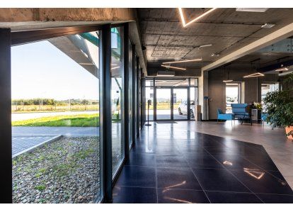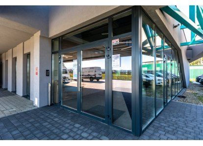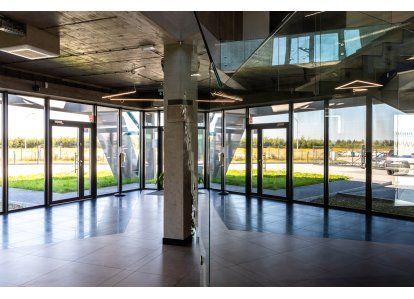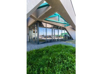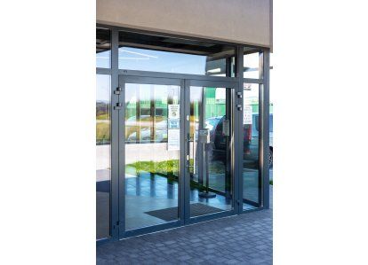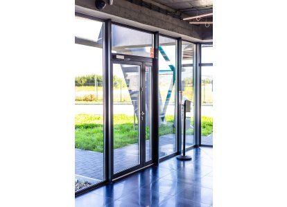 Zastosowane produkty: System DA-70, Drzwi zewnętrzne i wewnętrzne, okna rozwierno-uchylne, stałe przeszklenia oraz drzwi przeciwpożarowe. Wszystkie produkty zostały wykonane z aluminium.
