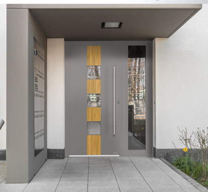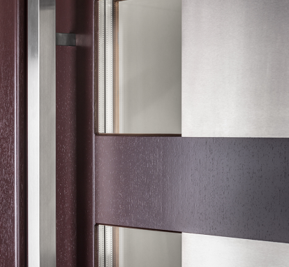 Jako producent drzwi nakładkowych, DAKO oferuje prestiżowe połączenie drewna i aluminium, które wykorzystuje najlepsze cechy każdego z materiałów. Kombinacja obu surowców i pianki termicznej zapewnia doskonałą ochronę przed chłodem, wiatrem i deszczem. Funkcjonalna zewnętrzna nakładka aluminiowa wzmacnia odporność drewna, chroniąc skrzydło przed wilgocią oraz szkodliwymi czynnikami atmosferycznymi.