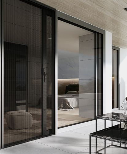 Skrzydło moskitiery przesuwa się pomiędzy górną, a dolną szyną jezdną. W dolnej części zastosowana jest rolka jezdna z mechanizmem, umożliwiającym płynną regulację kąta pochylenia każdego ze skrzydeł. Szeroki wybór szyn jezdnych pozwala na montaż moskitiery w różnych wariantach, na niemal wszystkich typach drzwi. W systemie wykorzystano hamulec spowalniający ruch skrzydła w krańcowym położeniu oraz zderzak, zapobiegający uderzeniu ramy moskitiery w szynę jezdną.