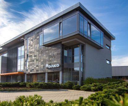 Anläggningen som upptar nästan 1000 m2 används för att visa upp vårt omfattande utbud av produkter, deras utrustning, färger och tillbehör. Tre våningar, där ett komplett utbud av fönster och dörrar i PVC, aluminium och trä samt garageportar och utvändiga fönsterskydd presenteras. Företagskunder som besöker DAKO har möjlighet att känna på och utforska alla varumärkets lösningar tillsammans med dedikerade tillbehör och designmöjligheter. Showroomet är också ett utrymme för affärsmöten och en plats för olika utbildningar avsedda för varumärkets affärspartner.