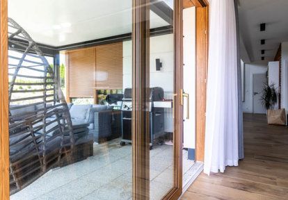 - I hela huset har man installerat PVC-fönster i serien DPQ-82 som kännetecknas av utmärkt värme- och ljudisolering. Hörnfönster i vardagsrummet som har högt i tak ger rummet en känsla av lätthet och släpper in väldigt mycket solljus.