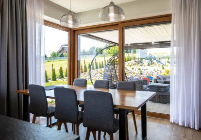 - Användarvänlighet, utmärkta värmeisoleringsparametrar och låg tröskel var utslagsgivande när husägarna beslutade sig för att välja lyft- och skjutdörrar HST mot altanen i både vardagsrummet och matplatsen som är ansluten till köket. De ger obegränsad passage och gör det möjligt att helt öppna rummen mot trädgården. Denna lösning har gjort altanen till ett avkopplingsområde för invånarna och en favoritplats där de tillbringar sin fritid på sommareftermiddagar.