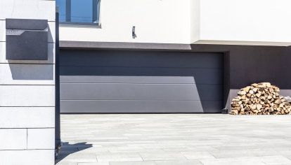 - Ett garage för två bilar i ett kvarter i huset? Denna lösning säkerställer bekvämligheten att resa i dåligt väder för både henne och honom. Tack vare en tvåläges garageport med trådlös kontroll kan ägarna av detta hus gå in i garaget utan att lämna bilen. Färgen på garagepanelerna som valts av ägarna till denna fastighet är antracitgrå.