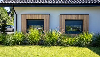 De valde PVC-fönster med fanér i mörkgrå siden. Fönstren (både vanliga och balkongfönster) och altandörrar förseddes också med utvändiga rulljalusier. De förbättrar fönstrens värmeisolering, gör det svårt att bryta sig in (det är viktigt eftersom inbrott i envåningshus sker ofta genom fönster eller balkongdörrar) och gör att du kan förmörka rummet helt - det är särskilt viktigt till exempel i ett sovrum.