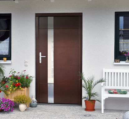 Med ett brett utbud av möjligheter att välja originaldekorer, utsmyckningar eller glas kan dörren anpassas till andra delar av fasaden, vilket ger möjlighet att skapa en stilistiskt sammanhängande helhet. Denna typ av dörr kännetecknas av att dörrbladet utgör ett enhetligt plan som ger dörren en mycket attraktiv, modern och prestigefylld karaktär - och denna lösning är för närvarande en av de mest populära dörrlösningarna som starkt exponeras på internationella bygg- och designmässor.