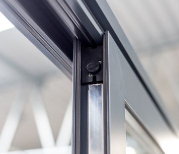 Ingjutning av karmen i golvet eliminerar konstgjord tröskel och de konstruktionsmässiga möjligheterna gör det möjligt att montera systemet överallt där det finns begränsningar för konstruktionens höjd. Dörren är lättmanövrerad och bekväm trots de stora dimensionerna.