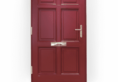 DAKOs röda trädörrar, som designades med tanke på europeiska mässor, återspeglar en ädel skönhet och tidlös elegans. En traditionell design som passar in i det brittiska klimatet framhävs av en modig och intensiv färg som drar uppmärksamhet till sig.