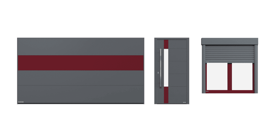 Vonkajšia farba: Bazaltovo sivá (RAL 7012) / Aplikácie vo farbe Rubínovo červená (3003.05)