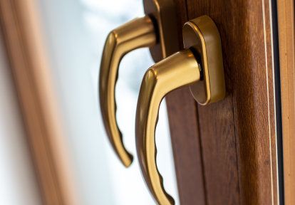 - Farba okien a výplní garáže je zlatý dub. Plastové okná v tomto variante veľmi efektne pripomínajú prírodné drevo a dobre ladia v modernom aj tradičnom architektonickom štýle. K tejto farbe fólií sa výborne hodili kľučky vo farbe starého zlata.