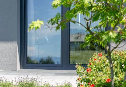 Je to jasne viditeľné na tomto projekte, v ktorom sú sivé okná a dvere neutrálnym pozadím pre odvážny, eklektický interiérový dizajn plný farieb. Tmavo sivá, použitá aj v povrchovej úprave fasády a vonkajších roliet, zvýrazňuje červený detail zastrešenia terasy. Všetky prvky vytvárajú nezvyčajný, ale veľmi konzistentný charakter domu – dokonale odzrkadľujúci temperament investorov.