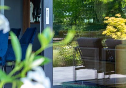 - Každá z obytných miestností má samostatnú terasu a spoločnú záhradu. V oboch prípadoch je to možné vďaka terasovým dverám HST. Nízky prah, veľká plocha zasklenia a výborné tepelnoizolačné parametre z nich urobili posuvné dvere, ktoré si investori vybrali.