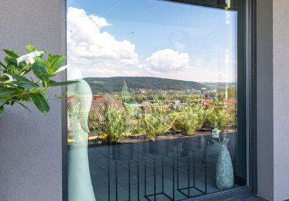 - Zaujímavým riešením, ktoré zvonku aj zvnútra budovy pôsobí mimoriadne elegantne, je použitie úzkych balkónových okien ako zdroja svetla v zádverí a kúpeľni. Vďaka tomu majú navrhnuté okná rovnakú výšku ako vchodové a terasové dvere.