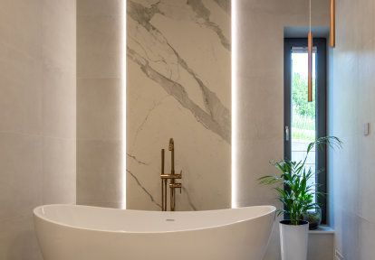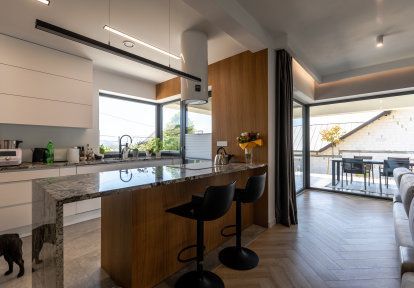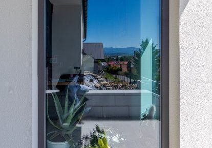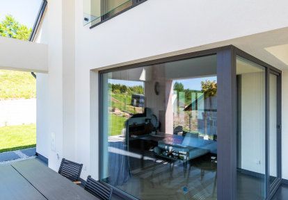 - Individuálny projekt domu znamená predovšetkým veľké možnosti dizajnu, ktoré vám umožnia vytvoriť priestor ideálne prispôsobený vašim vlastným potrebám. Majitelia domu sa rozhodli pre veľké množstvo presklenia, ktoré zabezpečuje prístup slnečného svetla počas dňa. V tomto konkrétnom prípade majú ešte jednu dôležitú úlohu – zaručujú pôsobivé výhľady na tatranský masív v diaľke. Investori sa rozhodli pre výrobky vyrobené z PVC. Voľba padla na sériu DPQ-82, ktorá sa vyznačuje vynikajúcou tepelnou a zvukovou izoláciou a tiež veľmi vysokou kvalitou spracovania. V spoločnej časti domu – jedálni, obývačke a kuchyni bolo rozhodnuté spojiť pevné zasklenia a balkónové dvere alebo HST terasové dvere. Obzvlášť pôsobivým dojmom pôsobí ten posledný, montovaný v jedálni a vedúci na terasu. Ich šírka je až 4,5 metra.