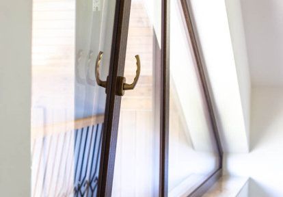 - Zaujímavé trojuholníkové okná sú navrhnuté zo strany záhrady, čo dodáva budove jej charakter. Pevné zasklenie bolo kombinované s otváravo-sklopnými oknami