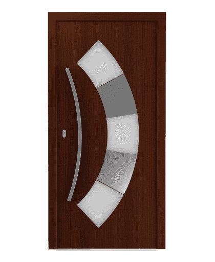Zloženie farieb a textúr. Vonkajšie dvere z panelov zdobené frézovaním. Štandardne sú vybavené aplikáciami z matnej a brúsenej nerezovej ocele, obdĺžnikovým zasklením a dekormi. Netradičné návrhy v bohatej výbave, kde hlavnú úlohu hrá viacúrovňová geometria a originálne dekorácie.