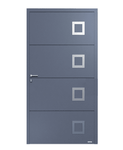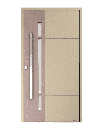 Zloženie farieb a textúr. Vonkajšie dvere z panelov zdobené frézovaním. Štandardne sú vybavené aplikáciami z matnej a brúsenej nerezovej ocele, obdĺžnikovým zasklením a dekormi. Netradičné návrhy v bohatej výbave, kde hlavnú úlohu hrá viacúrovňová geometria a originálne dekorácie.