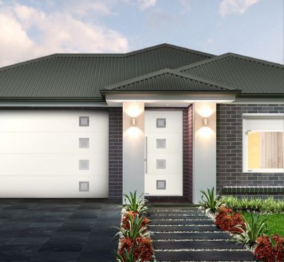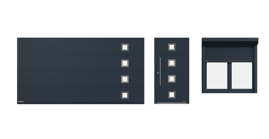 Expressive and trendy composition, based on strong references between the garage door and the door. A simple, repetitive detail made of glass and complemented by stainless steel plays an important role in this complementing act between the door and the garage door. Depending on the colour variant, the composition takes on a completely different character: from subtle white, fiery red to modest and modern anthracite.