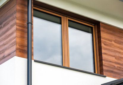 - DA-77 aluminum windows were installed throughout the entire house. Some characteristic features of these windows are expanded maximum sash size and unique design that corresponds with modern construction trends. Usage of high-quality materials in DA-77 windows, ensures optimal thermal and acoustic insulation. In guest rooms, kitchen, bathroom and garage the owners chose tilt-and-turn windows. This solution enables proper ventilation and easy maintenance.
