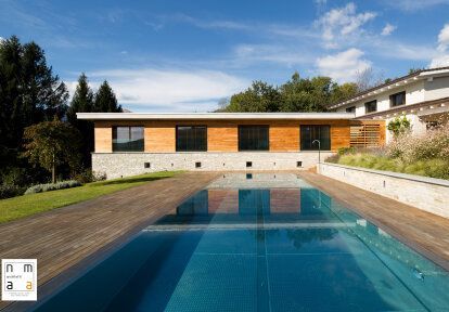 The villa was built and arranged in line with the latest architectural trends. The design shows inspiration from classic solutions, that have been adapted to the current conditions, such as wooden parquet floors, a slightly sloping wooden ceiling or a fireplace. The spacious interiors are characterised by an innovative, yet cosy interior.