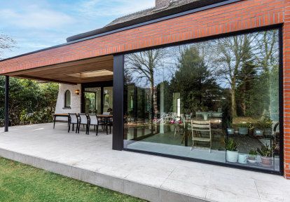 The use of large glazing in projects is undeniably one of the main trends in modern construction. Their greatest advantage is the unique style that perfectly corresponds with both modern design and classic decor. The large, glazed surface of the patio doors visually enlarges the rooms and introduces the maximum amount of sunlight into them. The owners of the presented house wanted to connect the rooms in the common part of the building with the garden, and to achieve this effect they chose DAKO PVC and aluminum joinery.