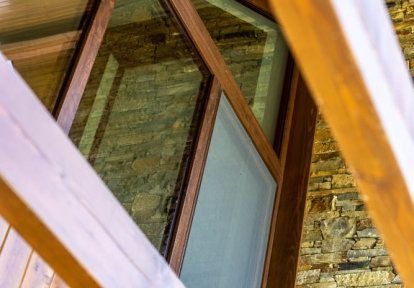 - From the garden side, interesting triangular windows have been designed, which give character to the building. They combine fixed glazing with tilt and turn windows.