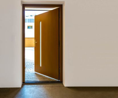 Minimalism for the demanding. Group 1 entry doors are made of solid (opaque) panels. They can be equipped with decorative milling and inlays. They are characterised by a minimalist design, perfectly fitting into the current trends.
