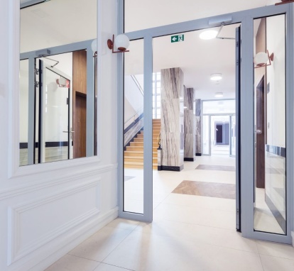 DAKO Fire doors manufacturer offer products that are not only stylish and modern but also fully compliant with all safety standards. Their doors are made from sleek aluminium and are available in a wide range of colours, from classic black to bright yellow and dark blue. Fully glazed panels allow natural daylight to pass through, while also offering visibility into rooms and along corridors. DAKO fire door features include: