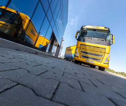 The extensive fleet of yellow and blue lorries operates regularly around Europe, using the innovative system of transport monitoring and SMS notifications, guaranteeing full control and efficient information flow. The logistic standard is also having lifts and unloading trolleys allowing for convenient and safe unloading of DAKO products.